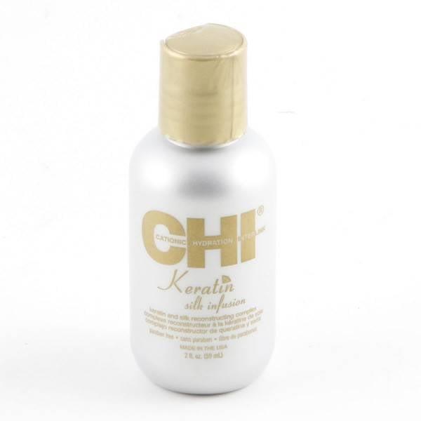 CHI Keratin Silk Infusion is een sterk herstellende leave-in treatment . Deze leave-in treatment van CHI hydrateert droog en beschadigd  haar, wat voor gezonder haar zorgt. Door de special ingredienten van CHI Keratin Silk Infusion wordt het haar verzorgt, gehydrateerd en wordt de elasticiteit van het haar verbeterd.